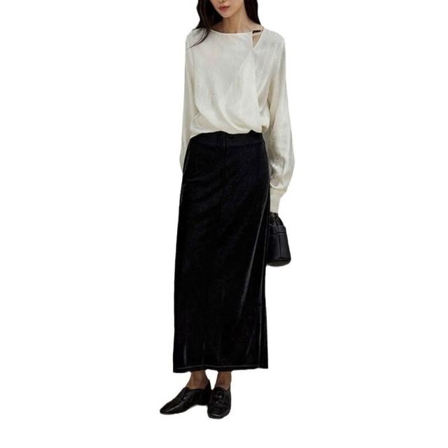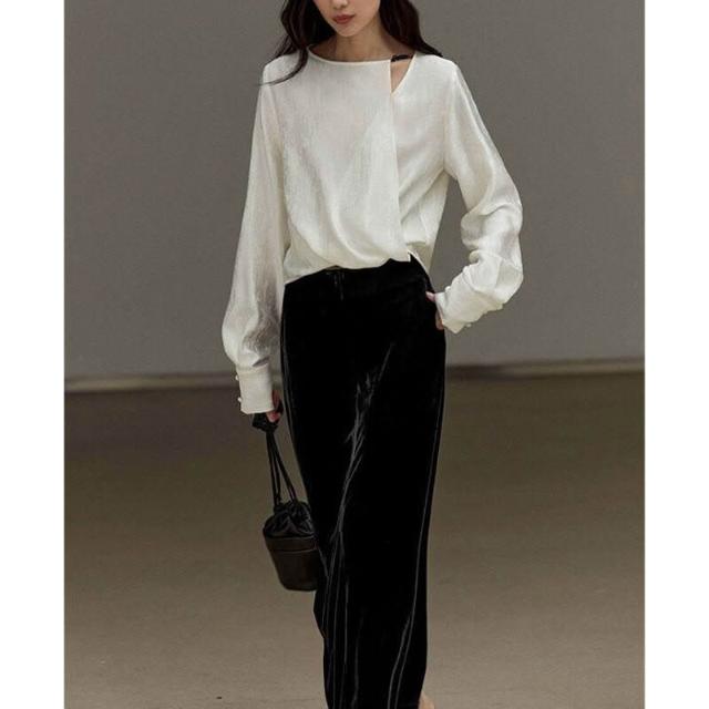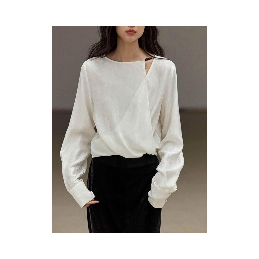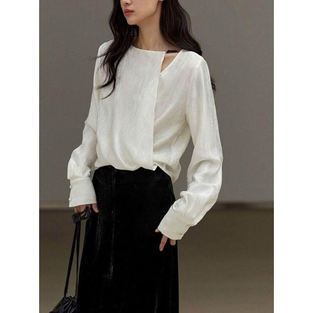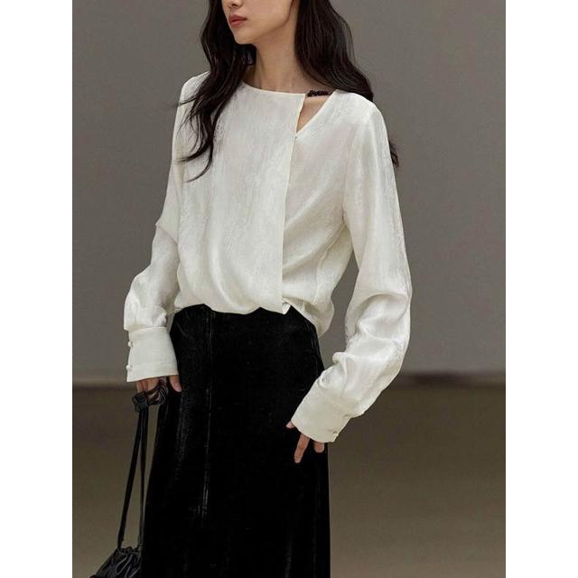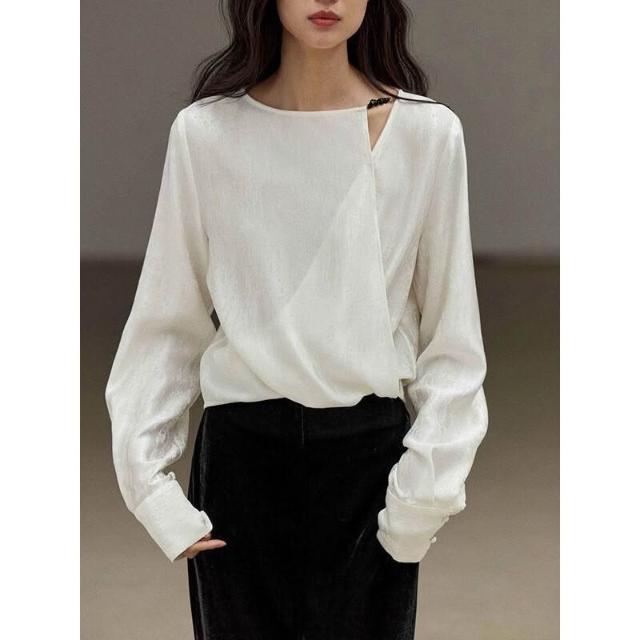 新中式緞面提花上衣2024秋季新款高級感女裝斜肩襯衣國風襯衫