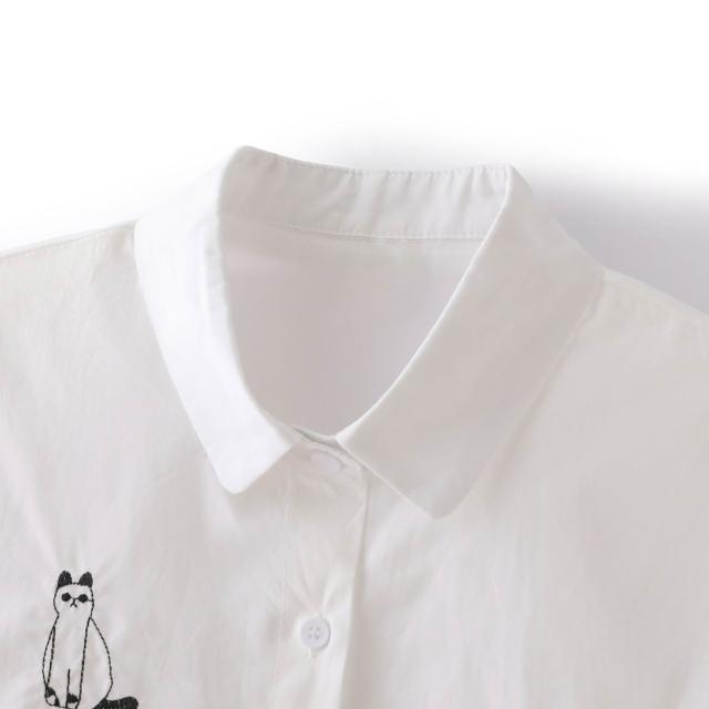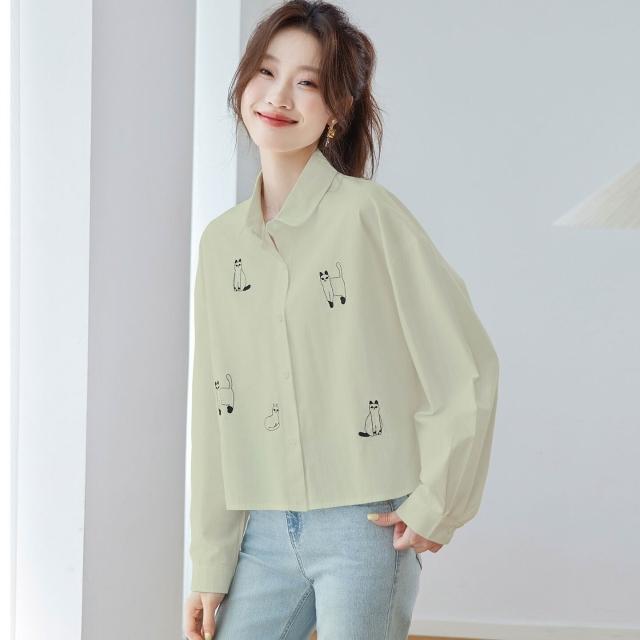 刺繡白色長袖純棉襯衫女2025秋季新款高級感輕奢減齡洋氣短款上衣