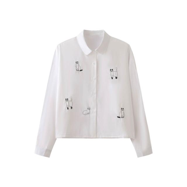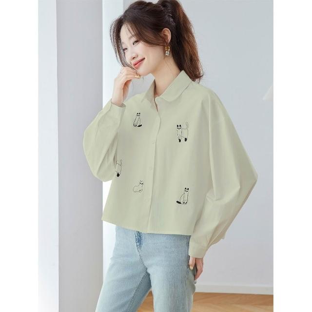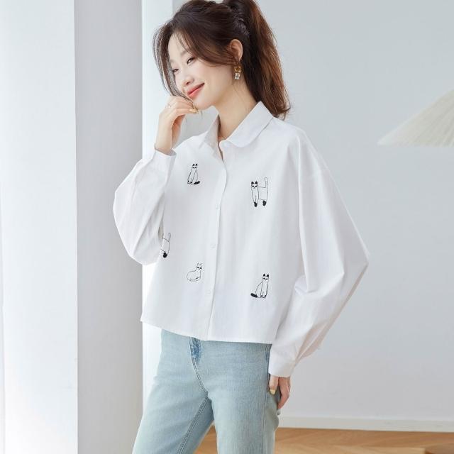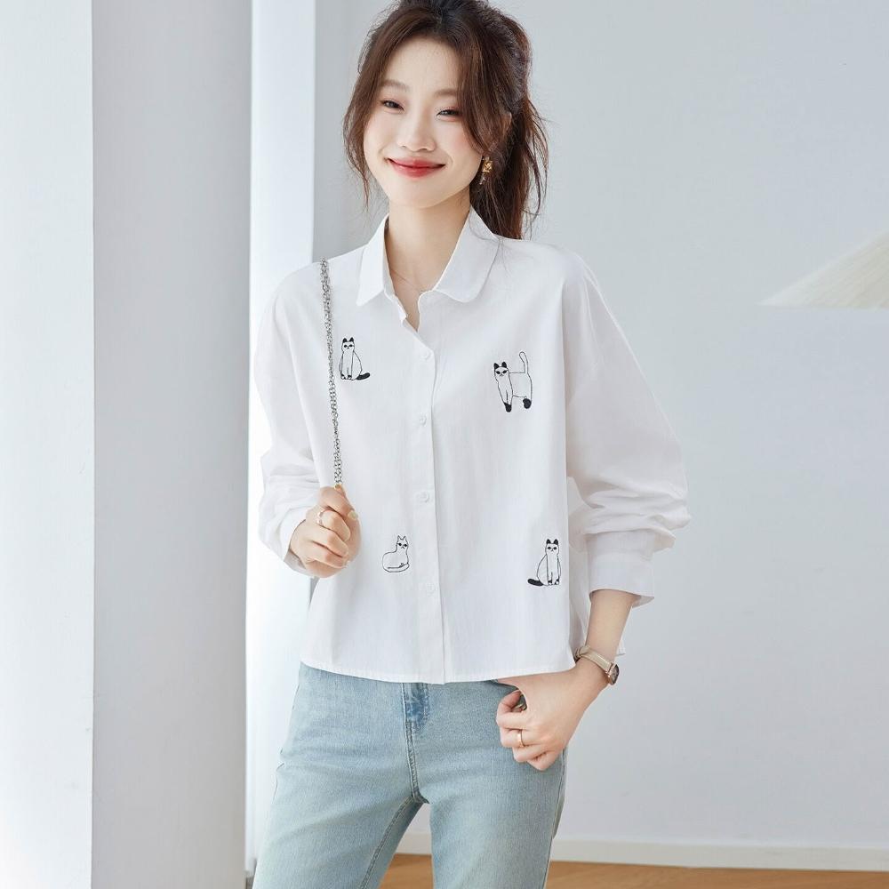 刺繡白色長袖純棉襯衫女2025秋季新款高級感輕奢減齡洋氣短款上衣