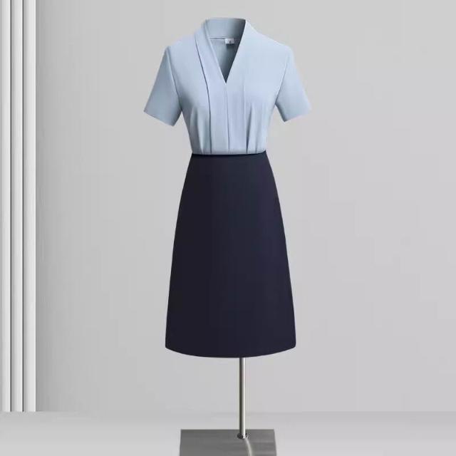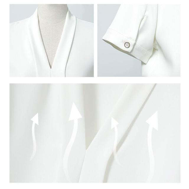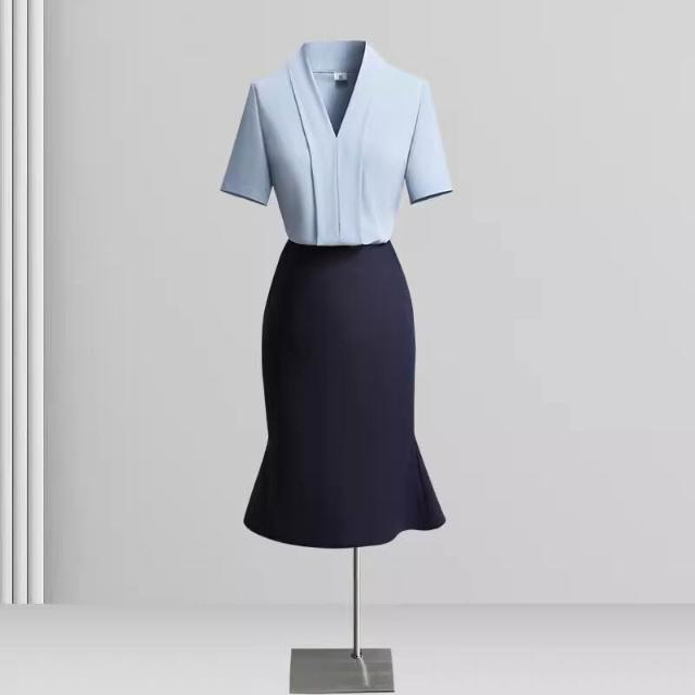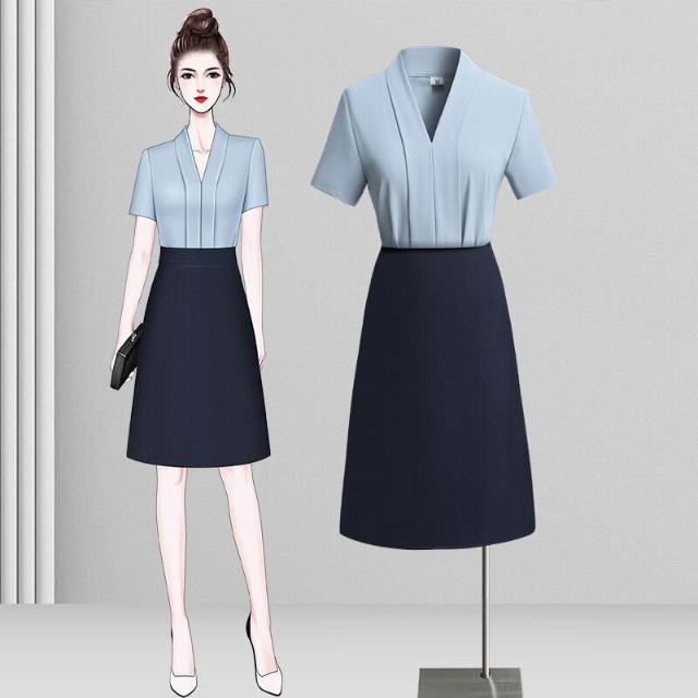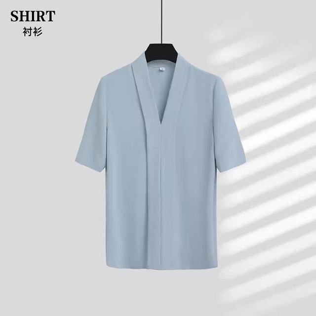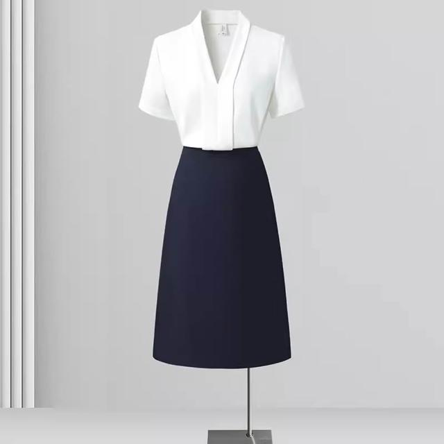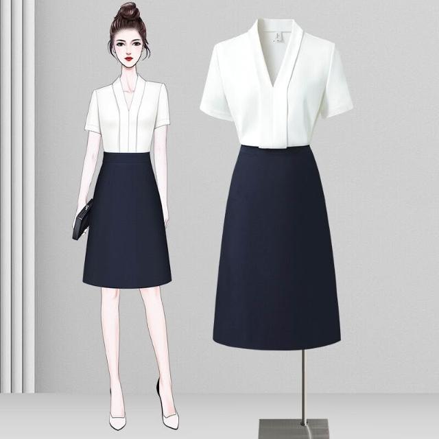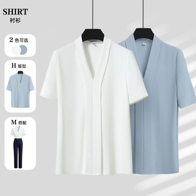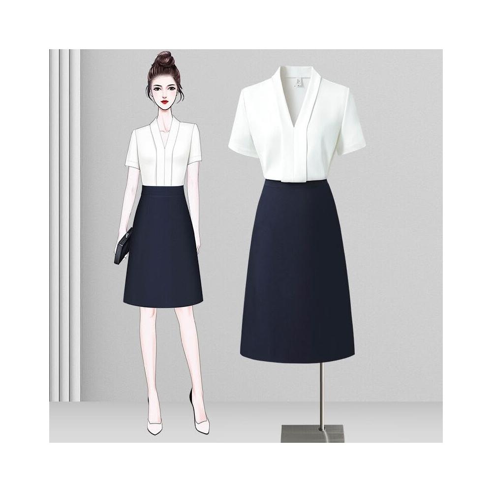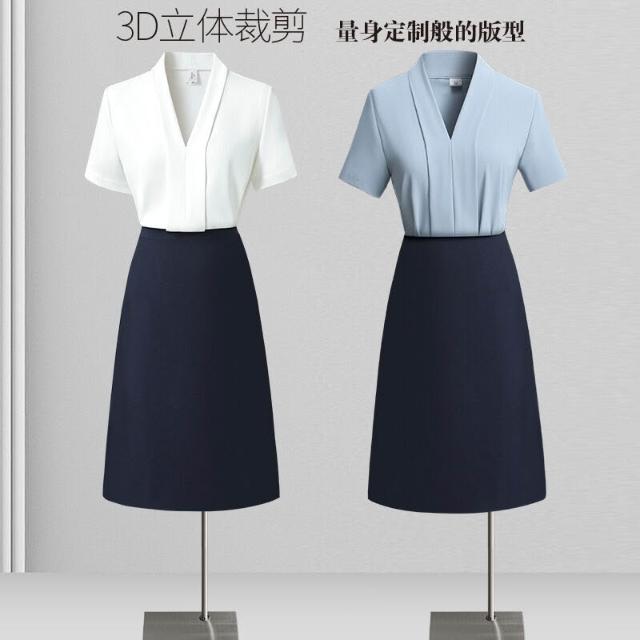 白色短袖襯衫女職業高級感襯衣套裝藍色V領百搭氣質上衣夏