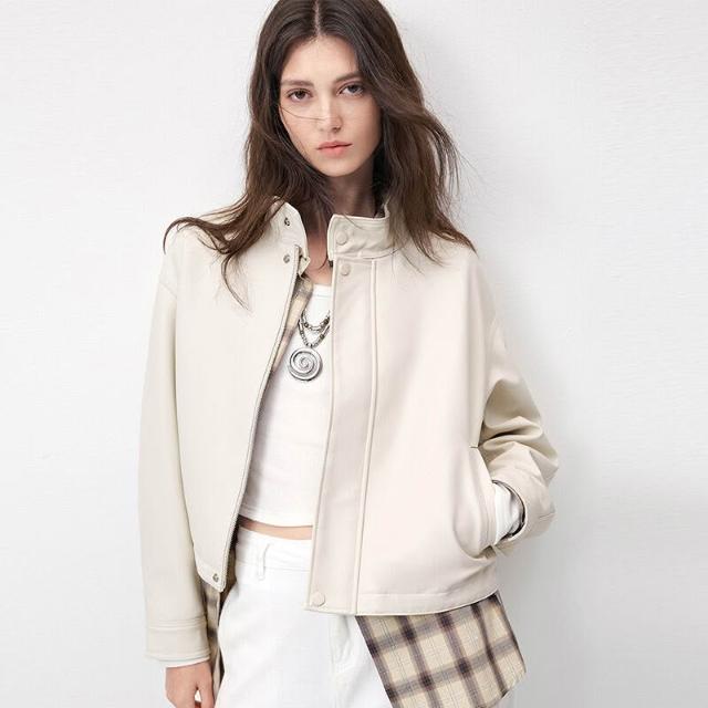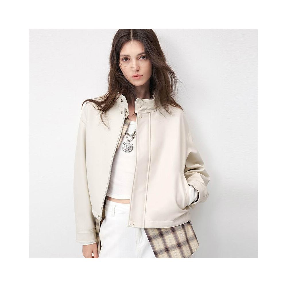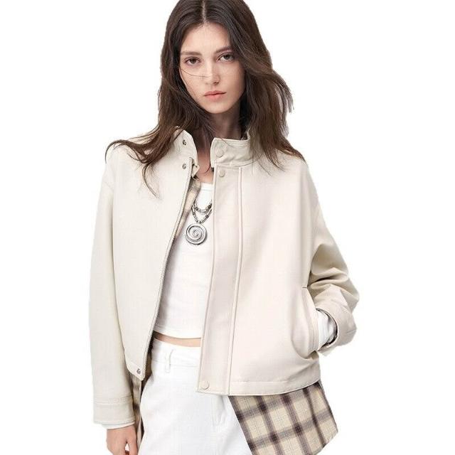 立領真皮皮衣外套女春秋裝小個子寬松休閑短款綿羊皮夾克