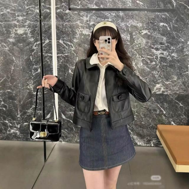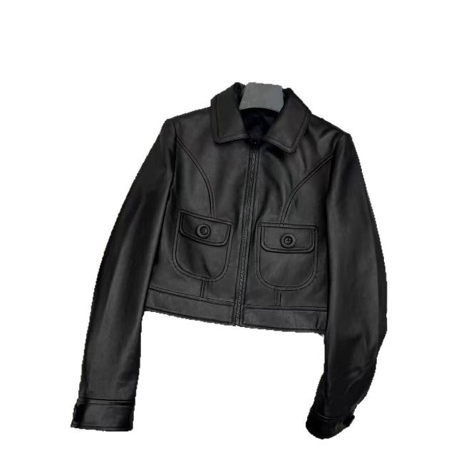 女裝2025春夏新款綿羊皮翻領夾克女寬松真皮皮衣外套2025新款