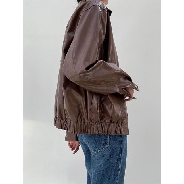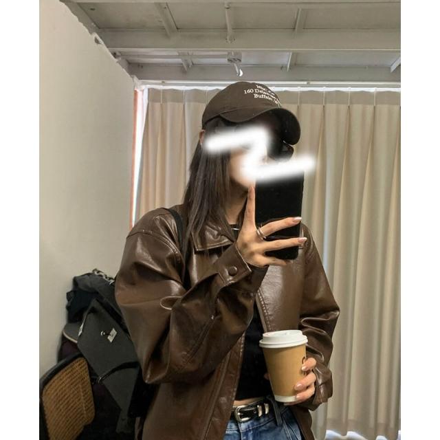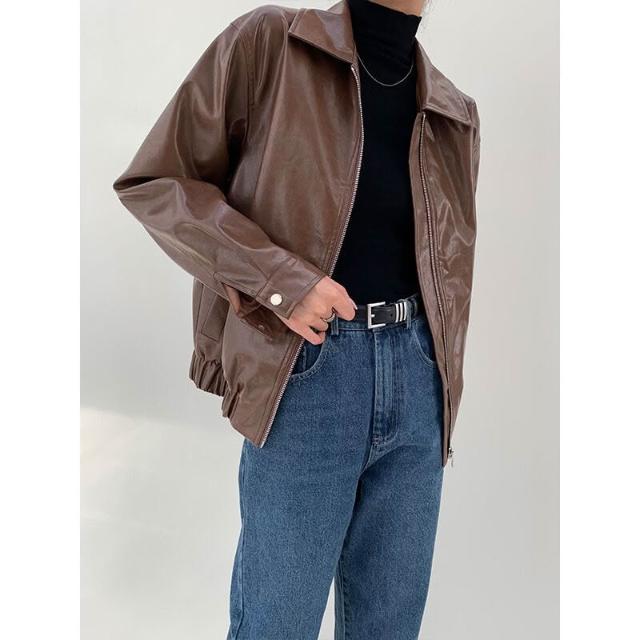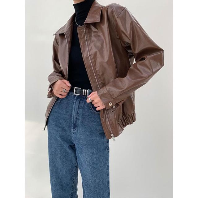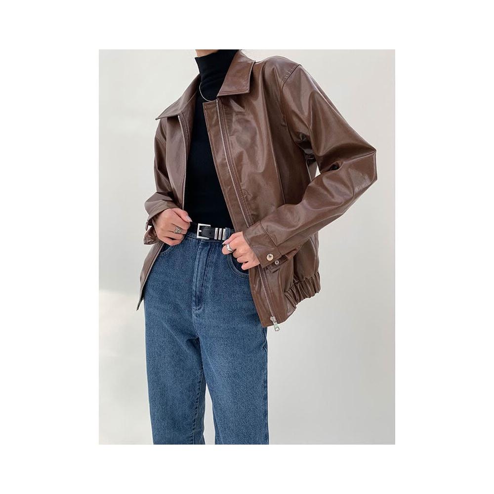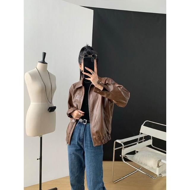 鴻衫 2025年秋季新款街頭禦姐風皮衣女帥氣 翻領皮夾克外套