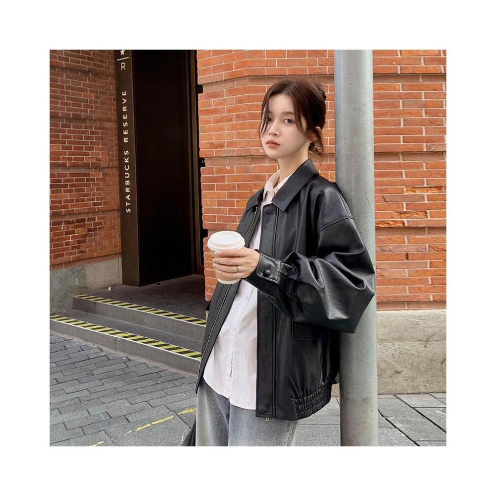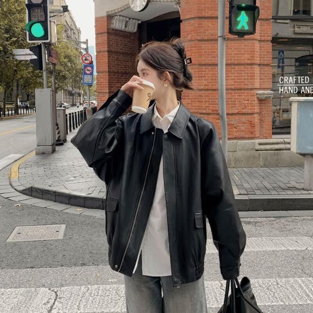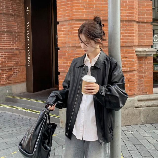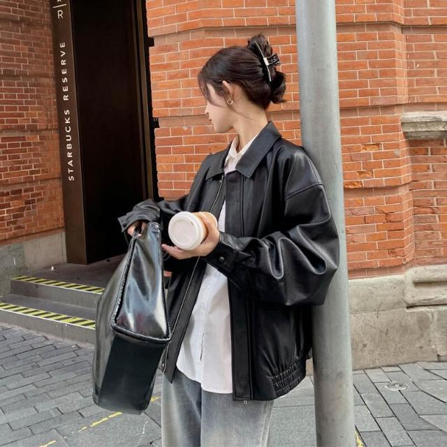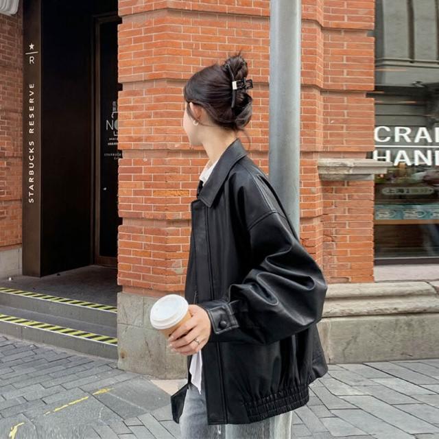 皮衣外套女短款2025早秋新款黑色pu小個子美式機車服夾克