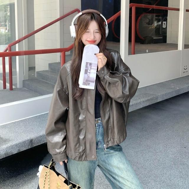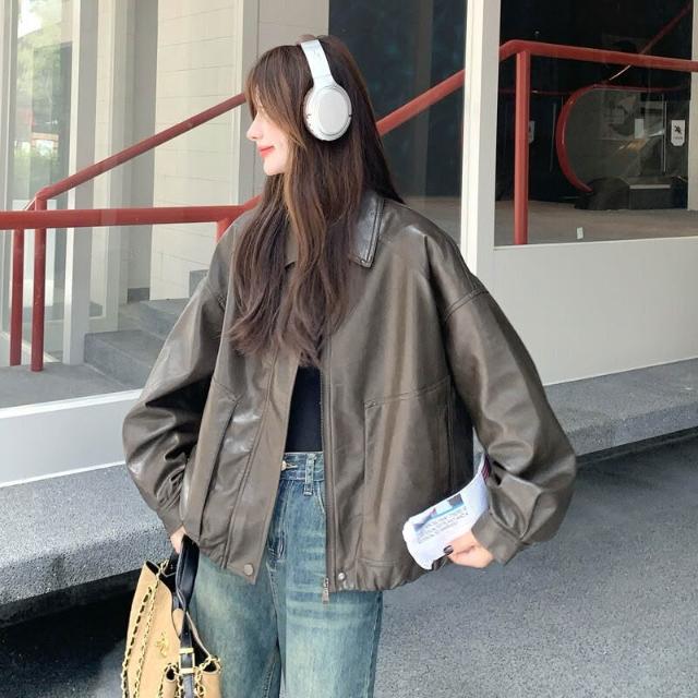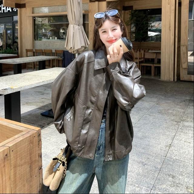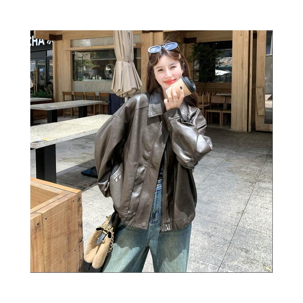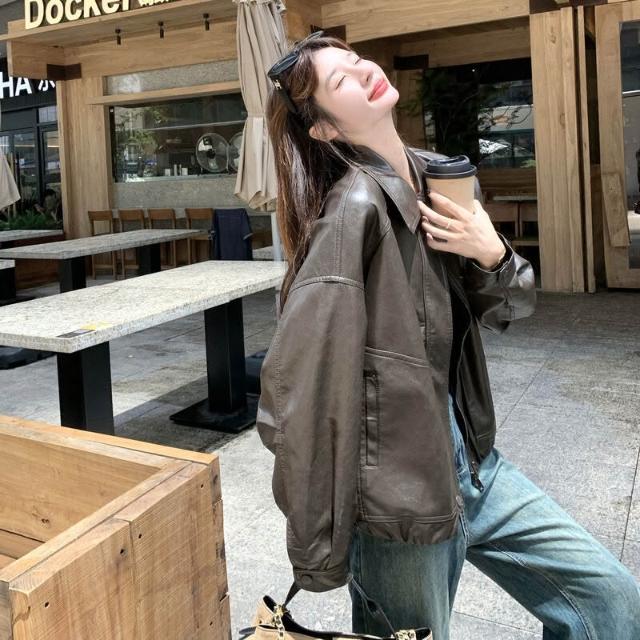 休閑設計感翻領皮衣外套女2025秋季小個子酷飒時尚百搭皮夾克