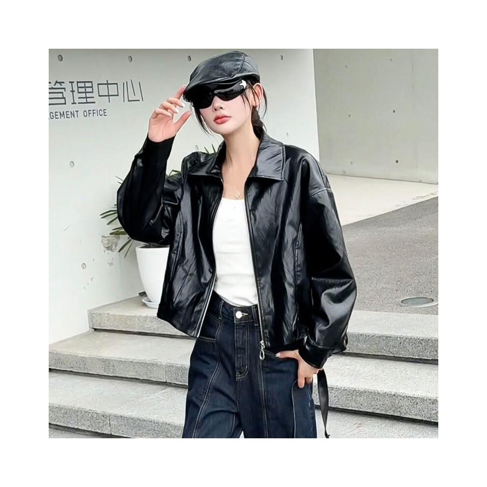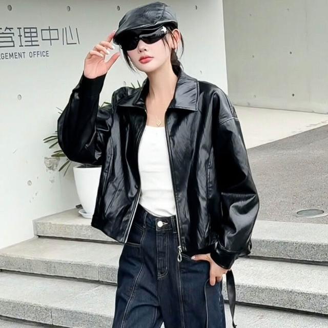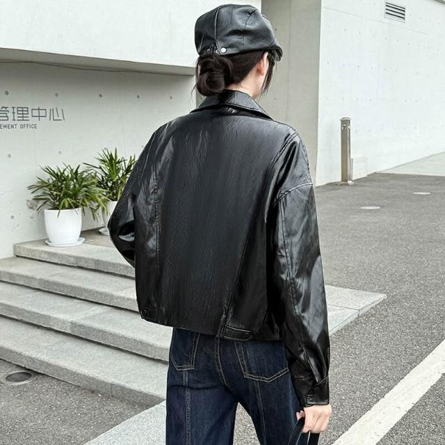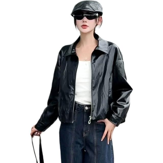 中青年女裝2025春秋季新款PU皮翻領收腰顯瘦百搭機車款皮夾克外套