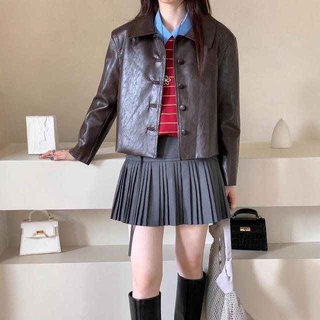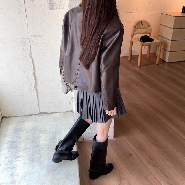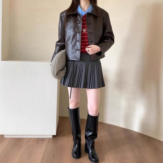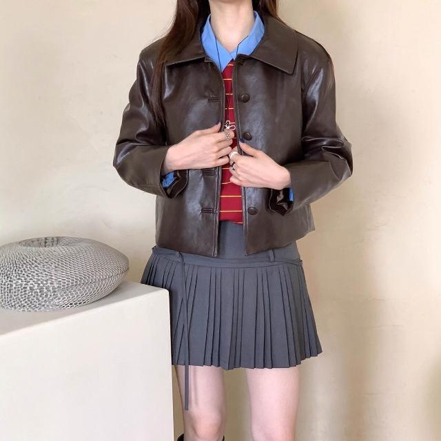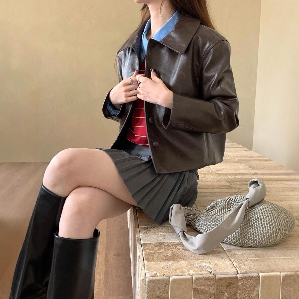 咖色皮衣外套女秋季2025新款韓系風高級感翻領廓形夾克上衣