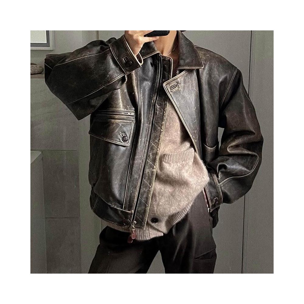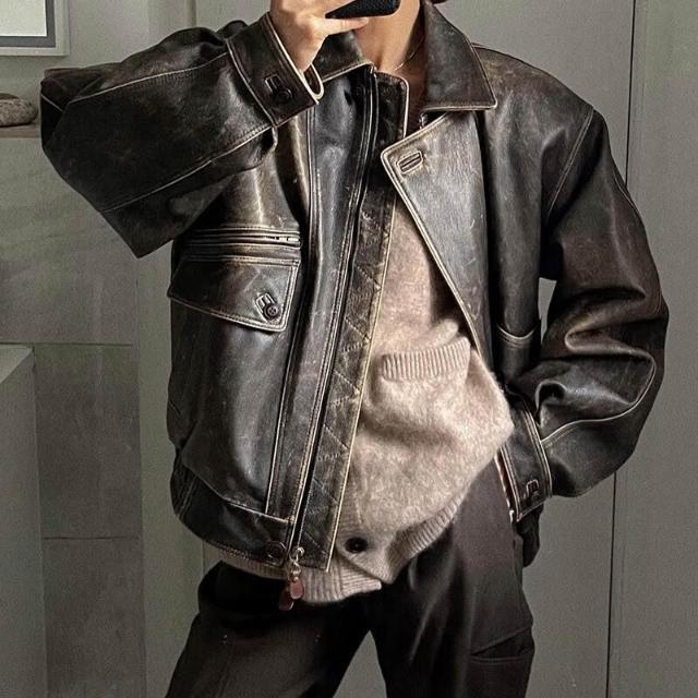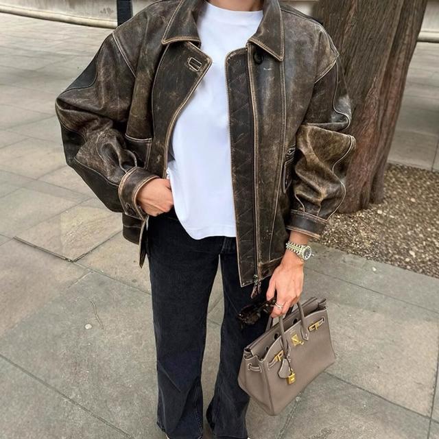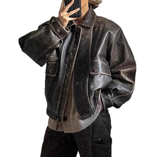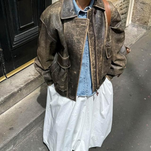 水洗皮衣外套女2025春季新款機車翻領寬松夾克上衣