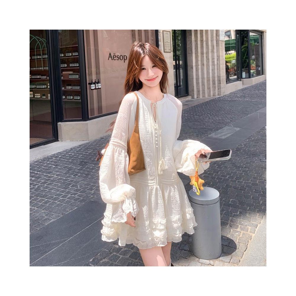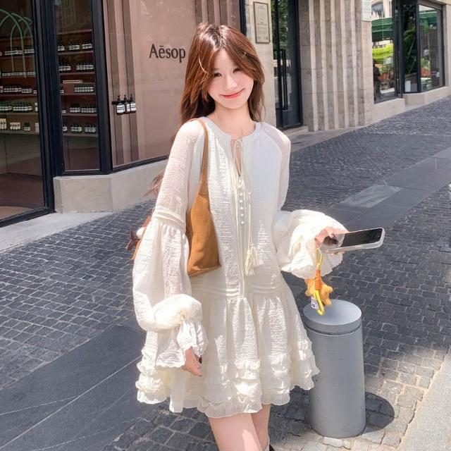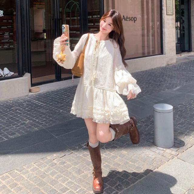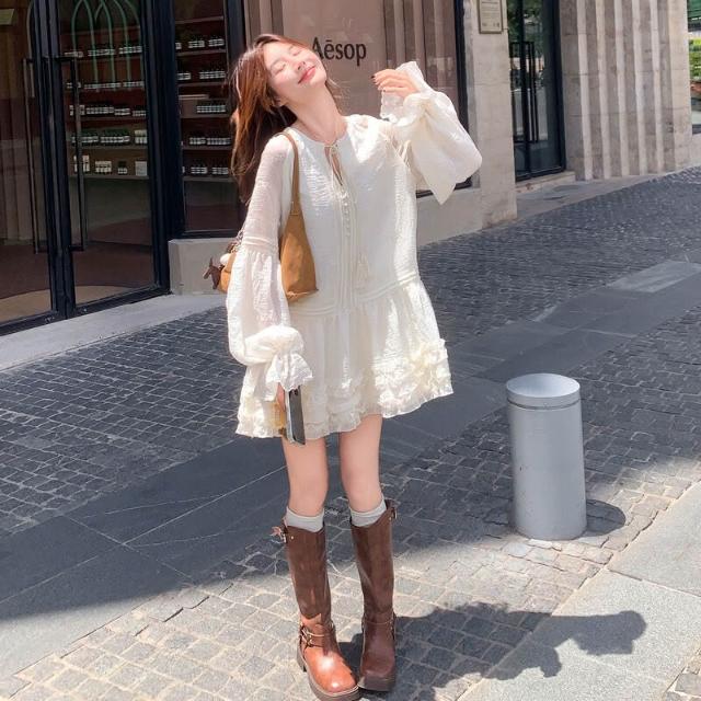 2025年秋季新款燈籠袖連衣裙女中長款氛圍感穿搭氣質寬松顯瘦裙子