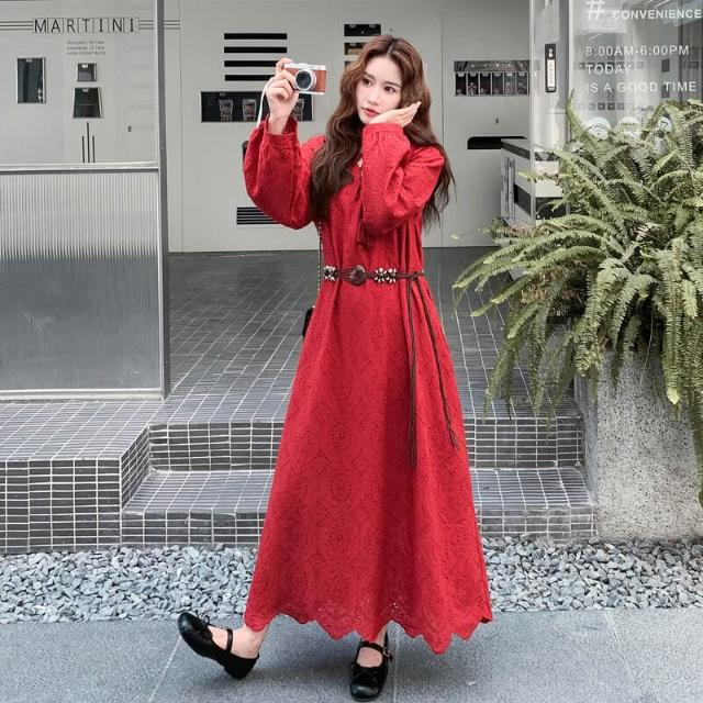 紅色法式浪漫氣質氛圍感連衣裙女2025年秋季新款獨特漂亮顯瘦長裙