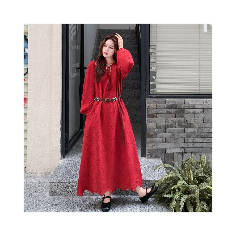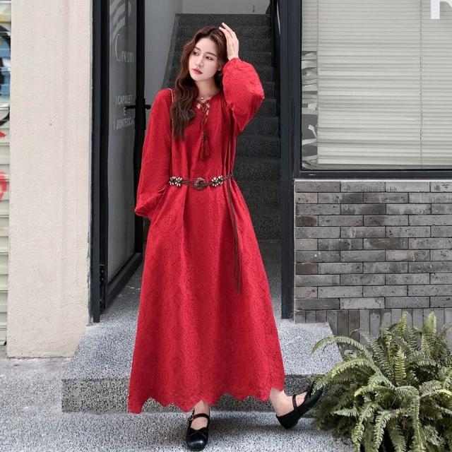 紅色法式浪漫氣質氛圍感連衣裙女2025年秋季新款獨特漂亮顯瘦長裙