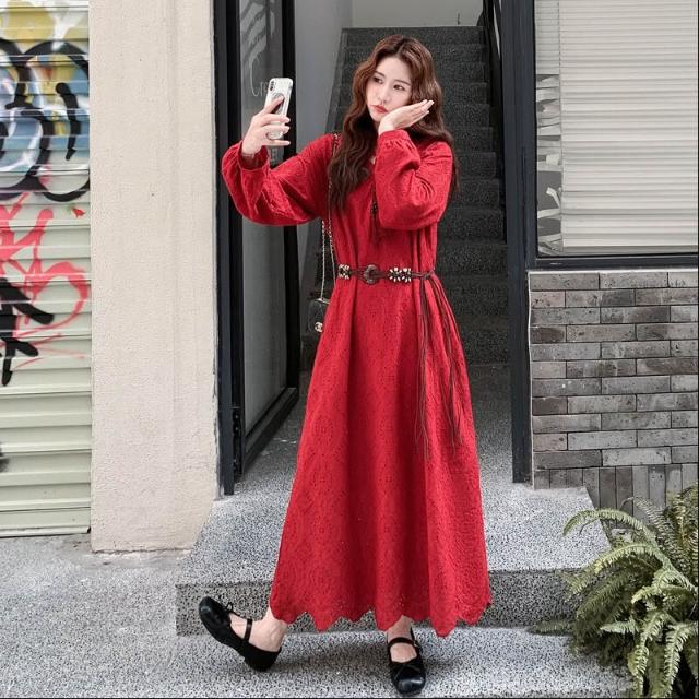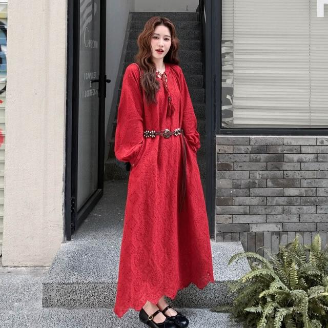 紅色法式浪漫氣質氛圍感連衣裙女2025年秋季新款獨特漂亮顯瘦長裙