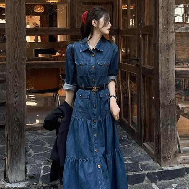港味牛仔連衣裙女早秋2024年新款韓系氛圍感穿搭收腰顯瘦長裙