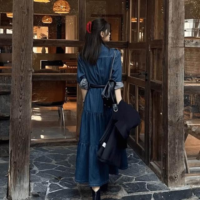 港味牛仔連衣裙女早秋2024年新款韓系氛圍感穿搭收腰顯瘦長裙
