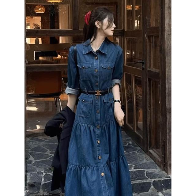 港味牛仔連衣裙女早秋2025年新款韓系氛圍感穿搭收腰顯瘦長裙