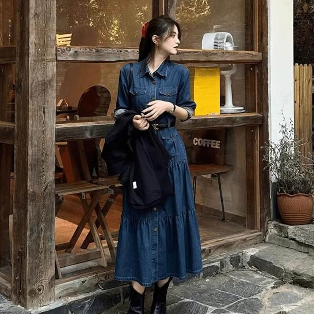 港味牛仔連衣裙女早秋2025年新款韓系氛圍感穿搭收腰顯瘦長裙