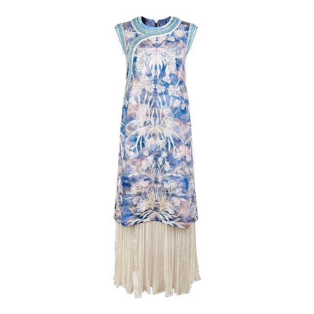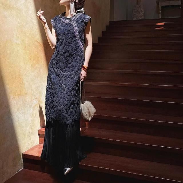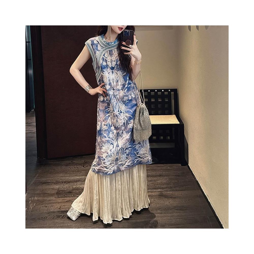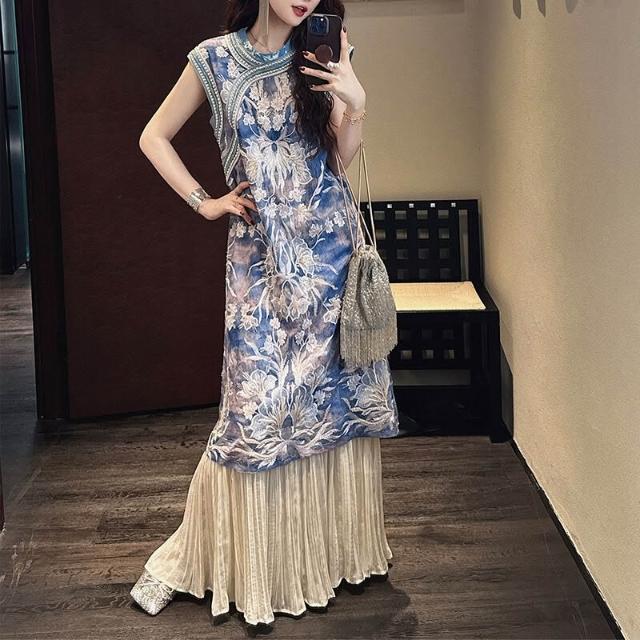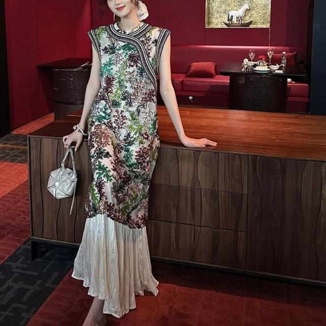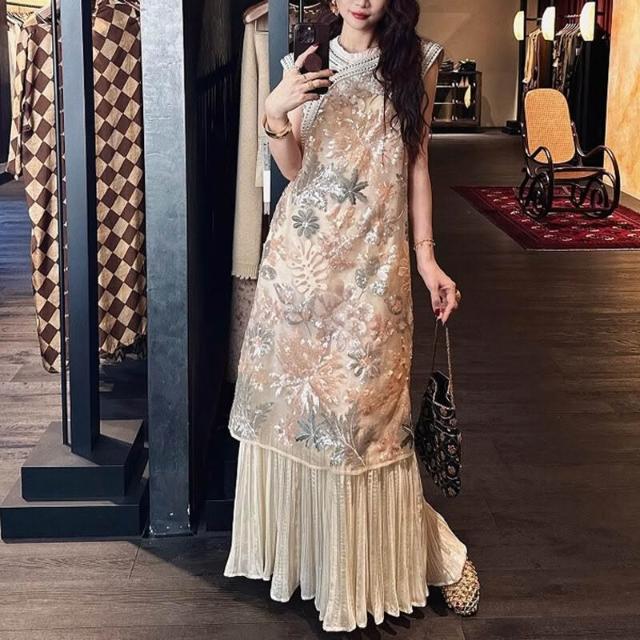 凝妝新中式國風連衣裙子2025新款重工繡花背心旗袍裙中長款裙
