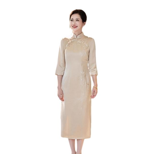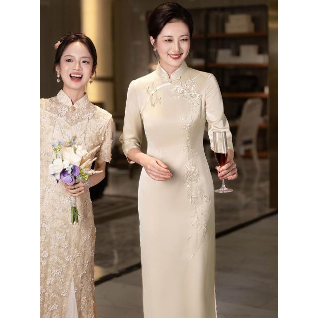 香槟色旗袍女夏季喜婆婆婚宴裝2025新款禮服媽媽新中式刺繡裙子秋