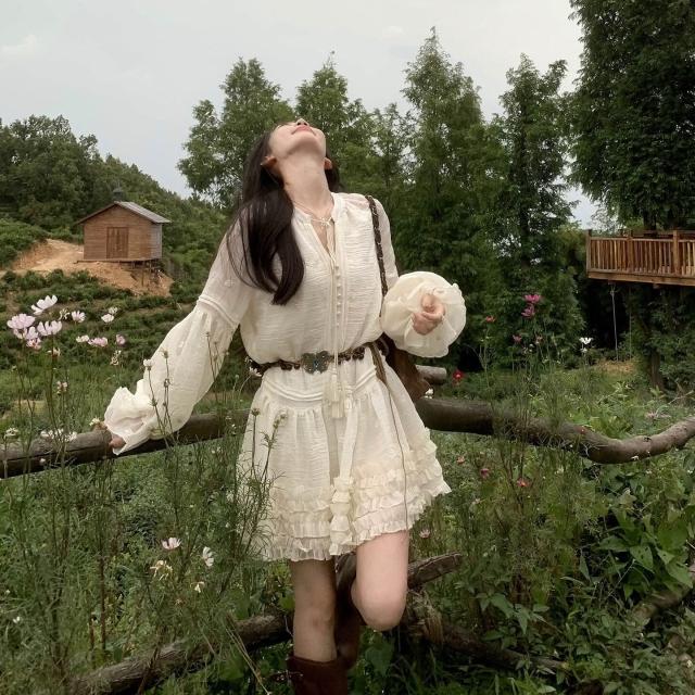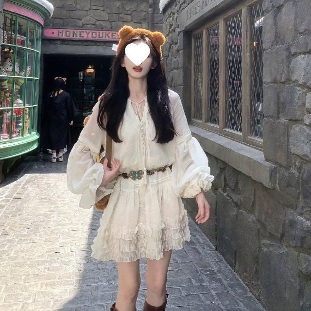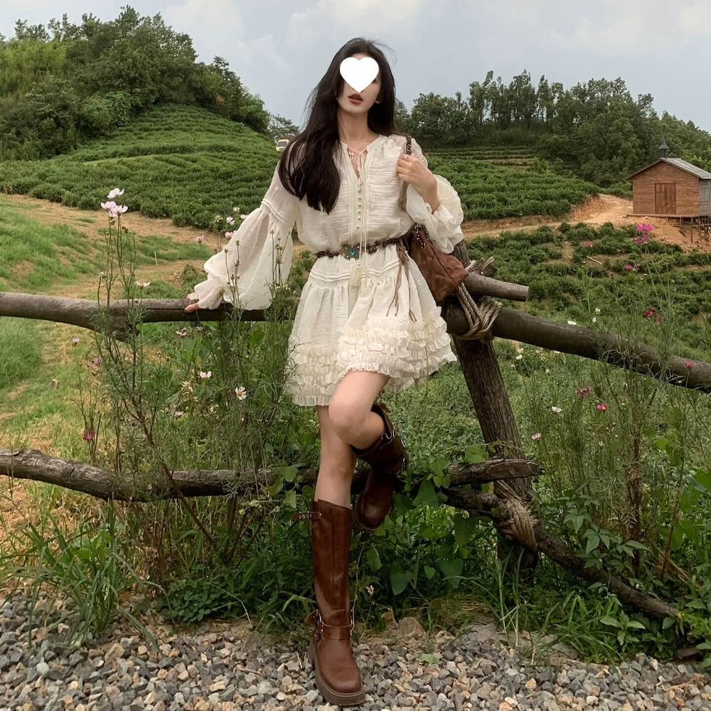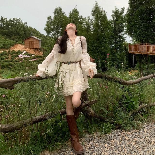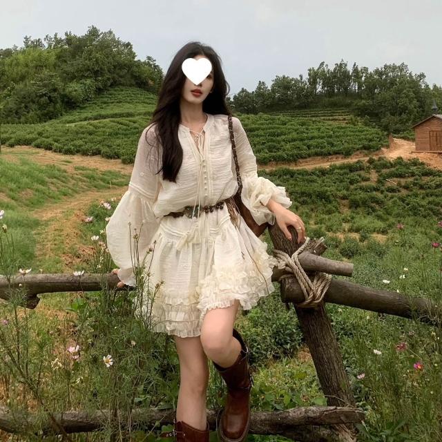一顆甜桃yikett《克萊蒙公路》燈籠袖連衣裙女氛圍感穿搭氣質秋
