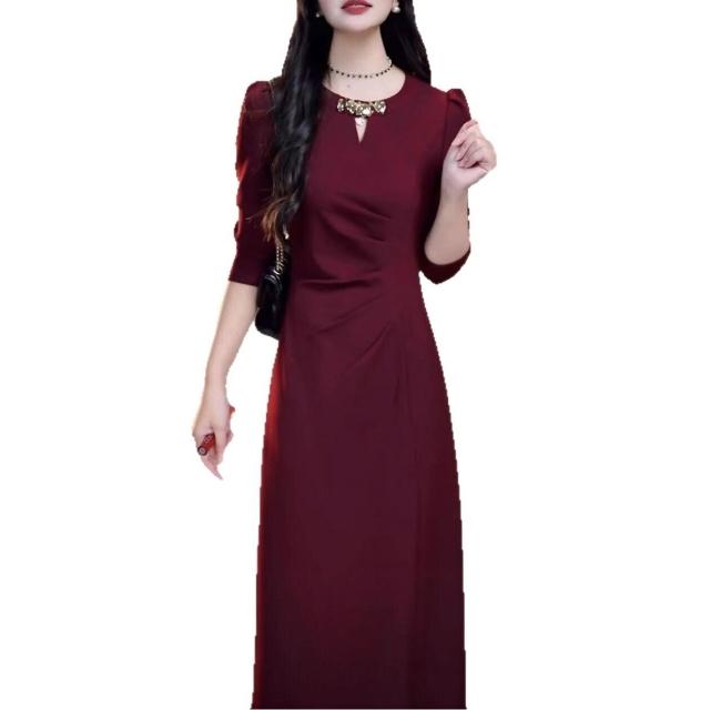 洋氣法式連衣裙女新款2025年秋季氣質修身拼接中長款流行裙子潮