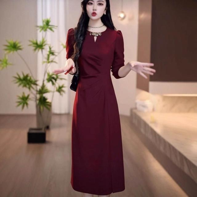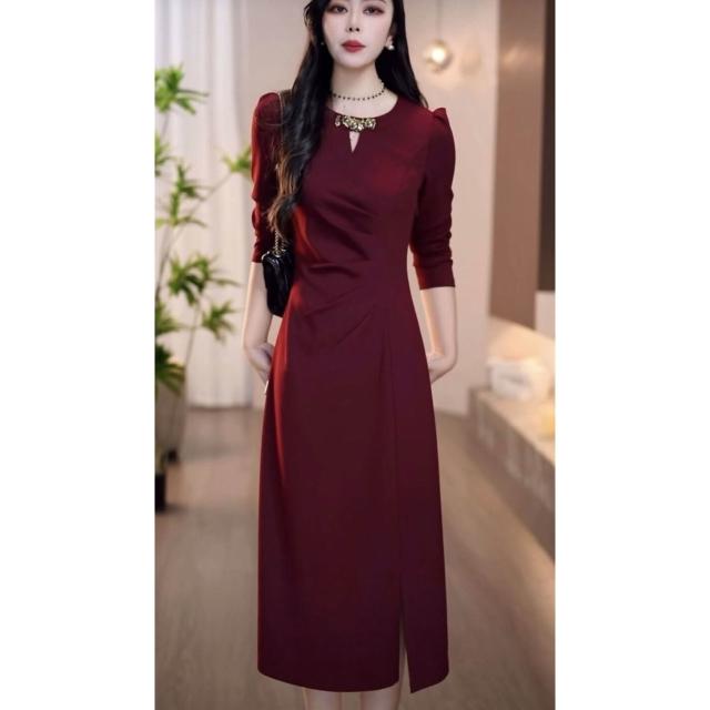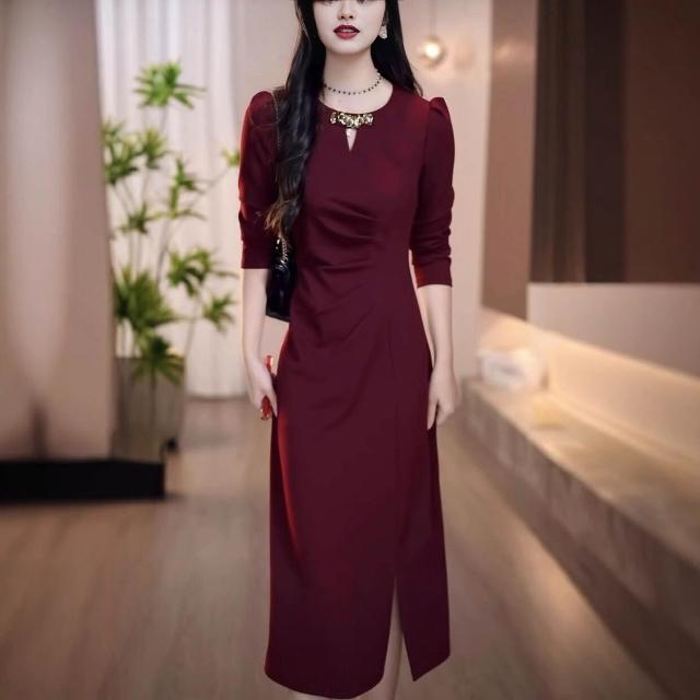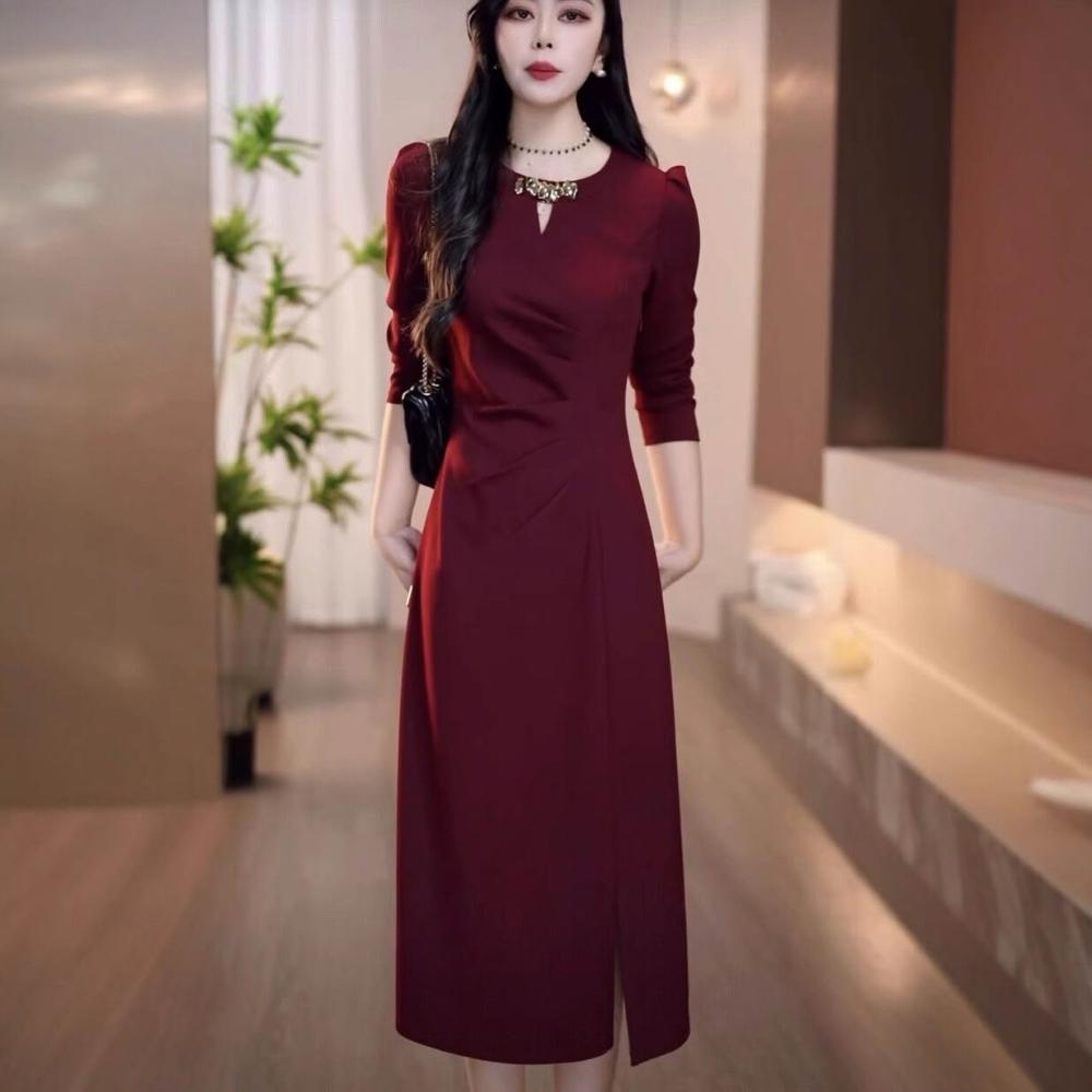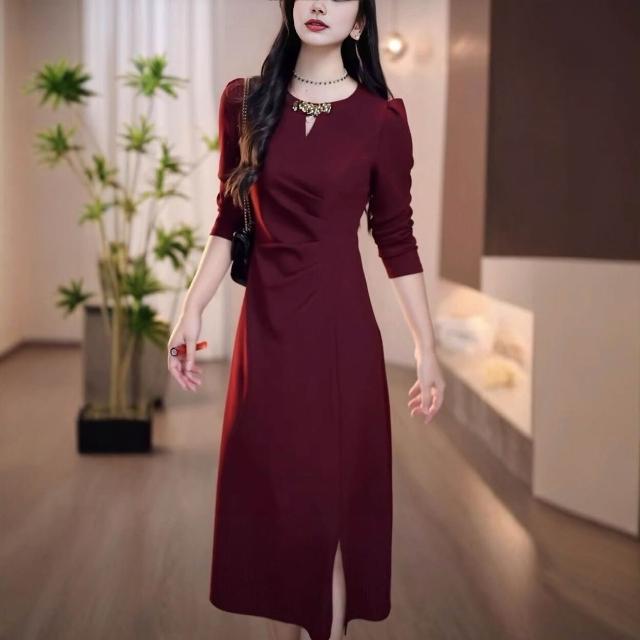 洋氣法式連衣裙女新款2025年秋季氣質修身拼接中長款流行裙子潮
