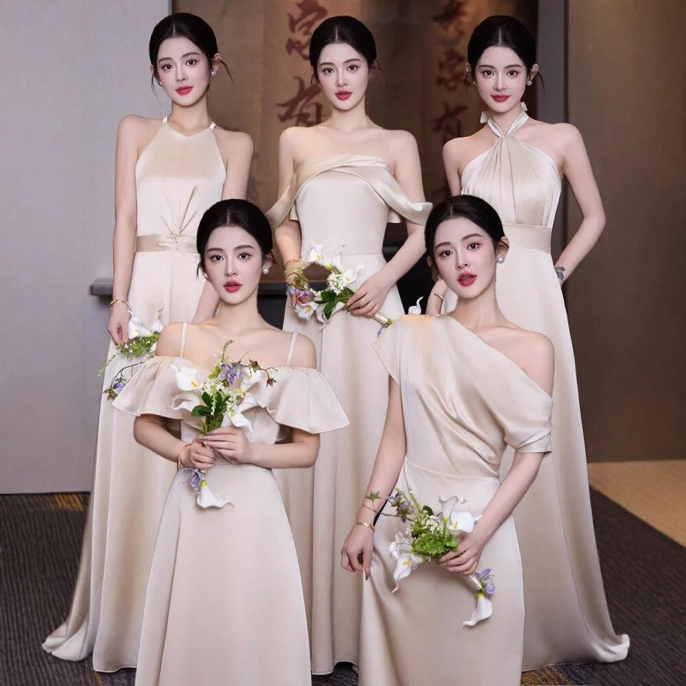 廠家直發 香槟色緞面伴娘服 姐妹裙 2026新款訂婚禮服裙 女高級感 絕美平時可穿
