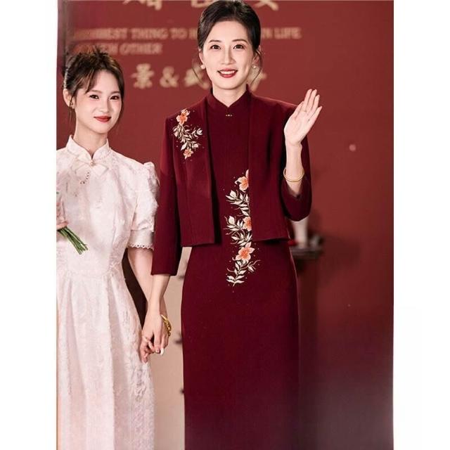 雪夕喜婆婆喜媽媽婚宴禮服高端輕奢高級感連衣裙端莊大氣套裝春秋