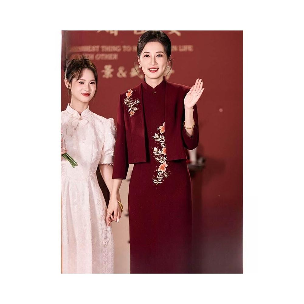 雪夕喜婆婆喜媽媽婚宴禮服高端輕奢高級感連衣裙端莊大氣套裝春秋