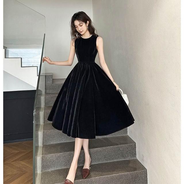 禮服 小黑裙 黑色晚禮服 法式氣質裙子 輕奢小眾洋裝 禮服裙 宴會連衣裙