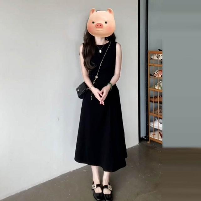 黑色無袖背心連衣裙子2025年女裝夏季新款高級感收腰顯瘦套裝長裙
