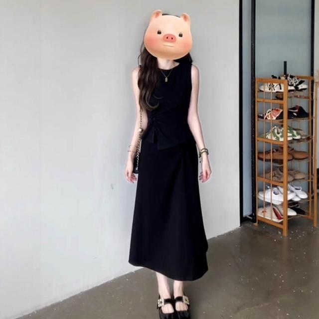 黑色無袖背心連衣裙子2025年女裝夏季新款高級感收腰顯瘦套裝長裙
