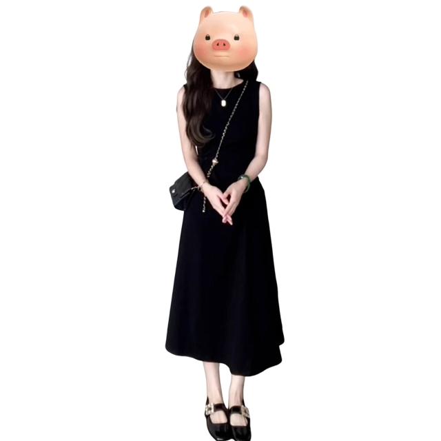 黑色無袖背心連衣裙子2025年女裝夏季新款高級感收腰顯瘦套裝長裙