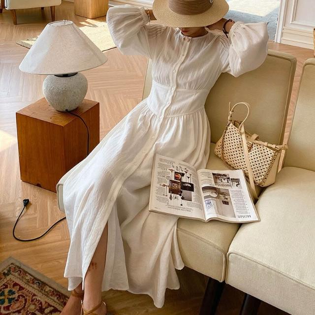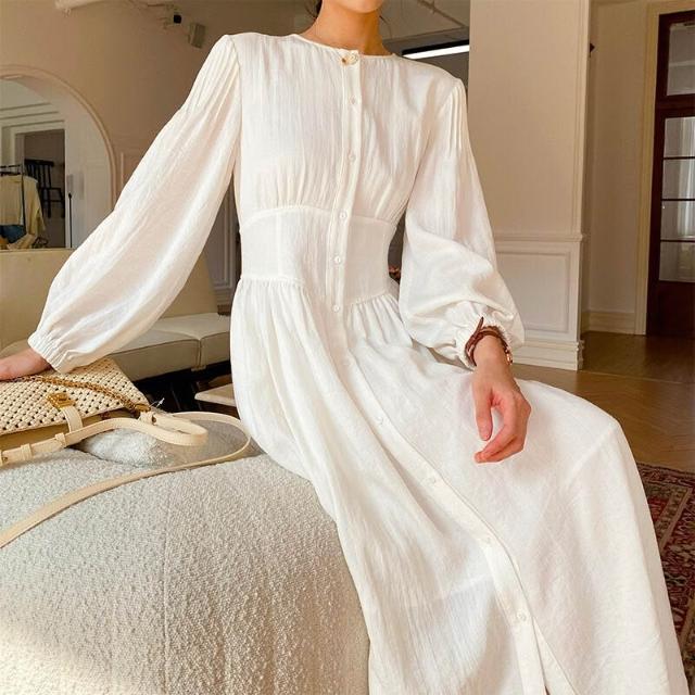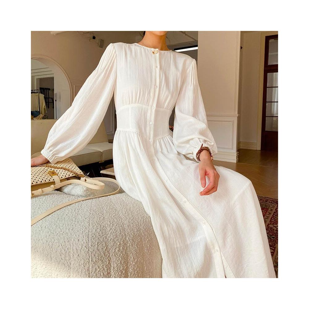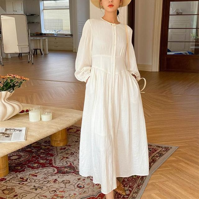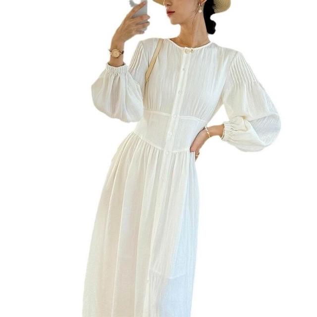 2025秋季法式連衣裙長袖設計感名媛風歐貨女裝白色連衣裙