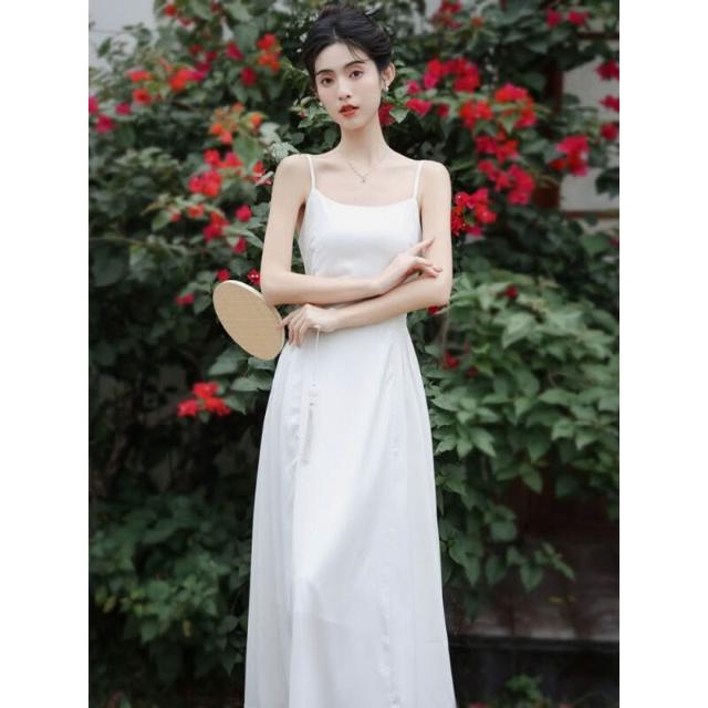 小眾設計款白色長裙新中式國風改良旗袍高端氣質仙女連衣裙兩件套