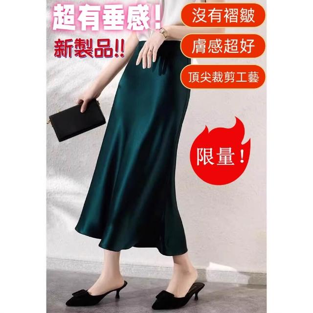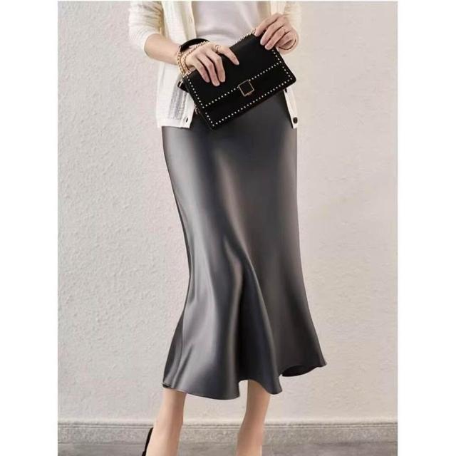 半身裙 高腰醋酸半身裙 女中長款裙子 三醋酸緞面垂感裙子 包臀魚尾a字裙 長裙