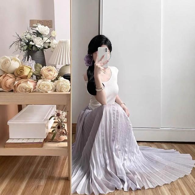 輕薄雪紡白色壓褶半身裙女2025春季優雅長款高級感百褶紗裙