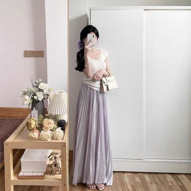 輕薄雪紡白色壓褶半身裙女2025春季優雅長款高級感百褶紗裙