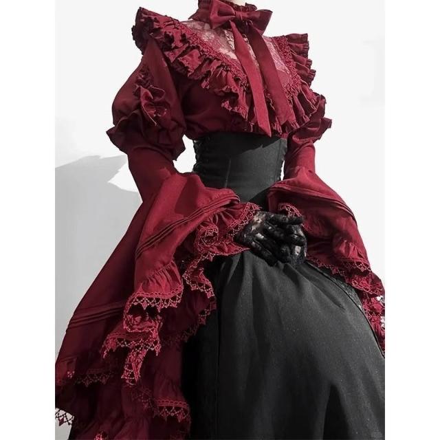新年戰袍穿搭服裝黑紅哥特風洛麗塔lolita長裙襯衫姬袖套裝