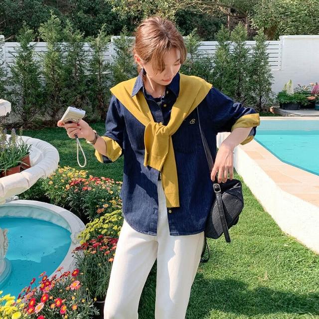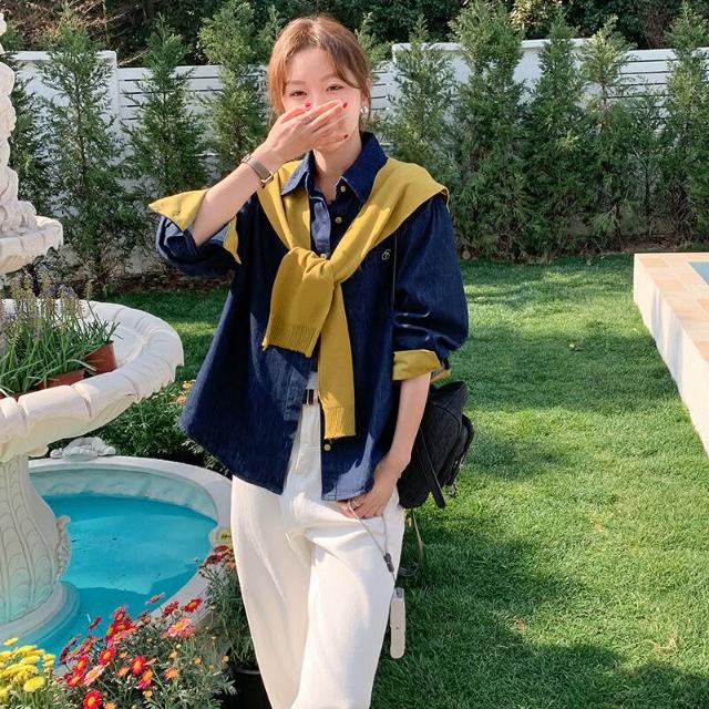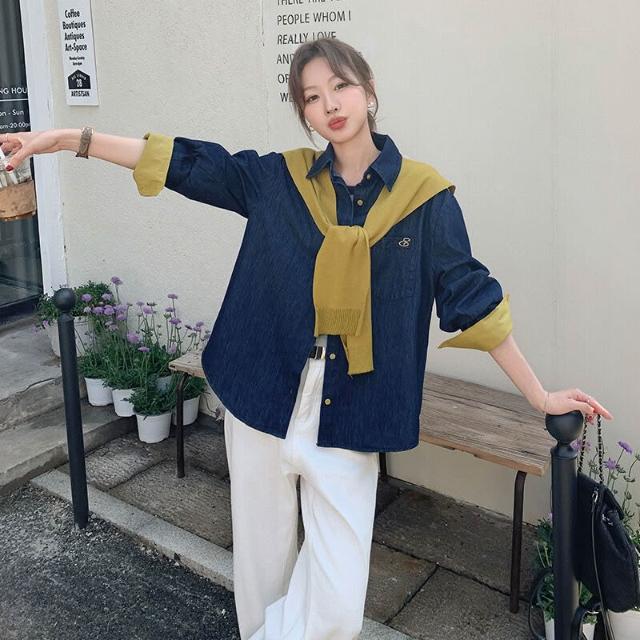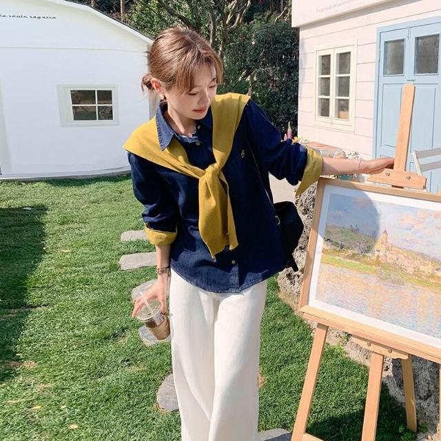 洋氣學院風時尚披肩牛仔襯衫女百搭秋季2025年新款小個子襯衣