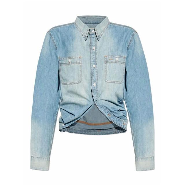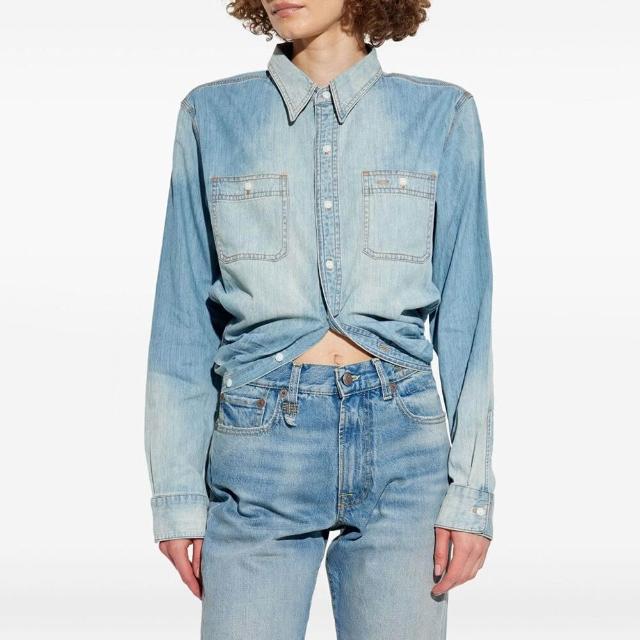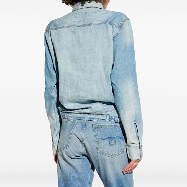 現2025秋冬新款小眾翻領長袖牛仔襯衫不規則褶皺休閑上衣女