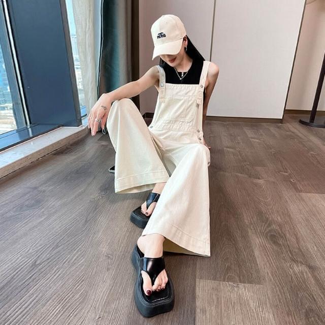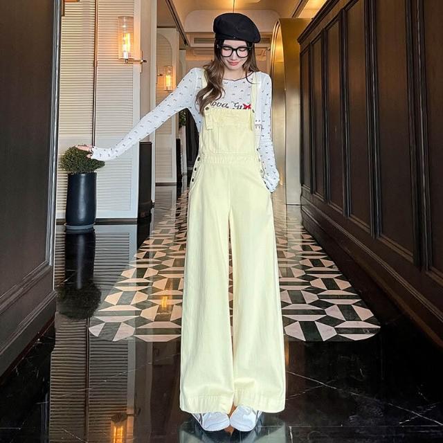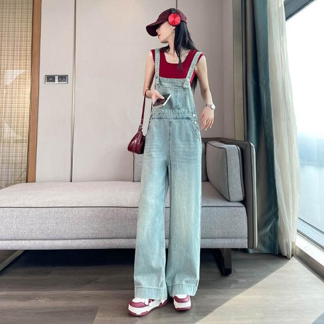 減齡牛仔背帶褲女春夏秋季2025年新款奶系韓版寬松顯瘦連體闊腿褲