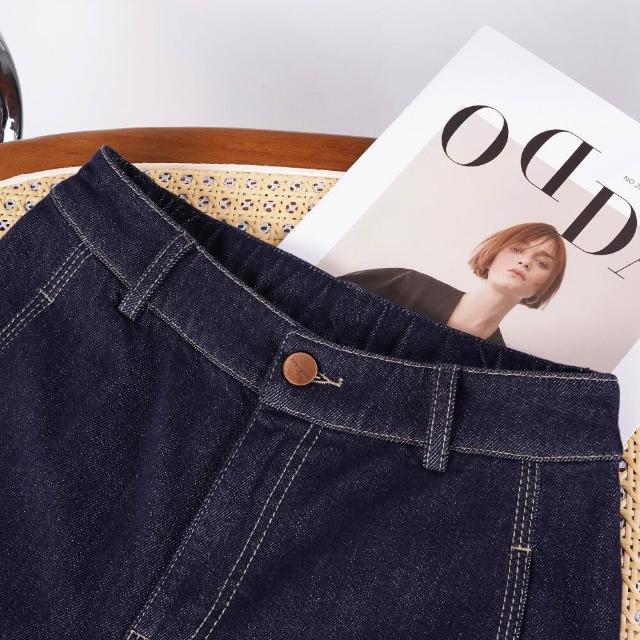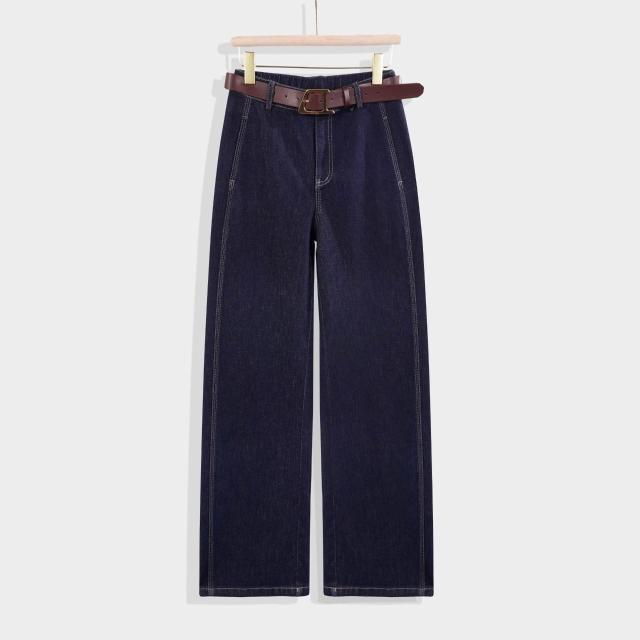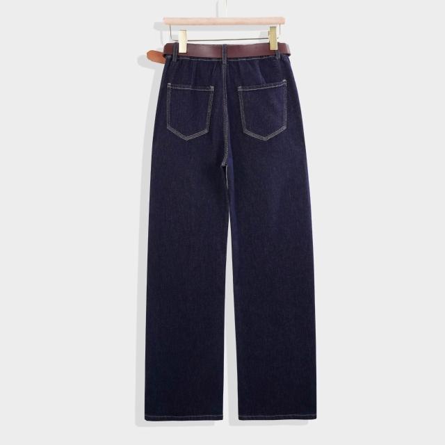 深藍色不易褪色原色直筒牛仔褲女2025年秋季新款側分割顯瘦闊腿褲