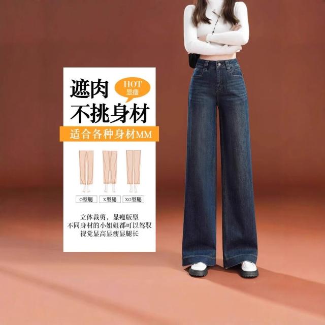 高腰牛仔褲寬松闊腿褲梨形身材女褲子2025春秋新款拖地褲長褲