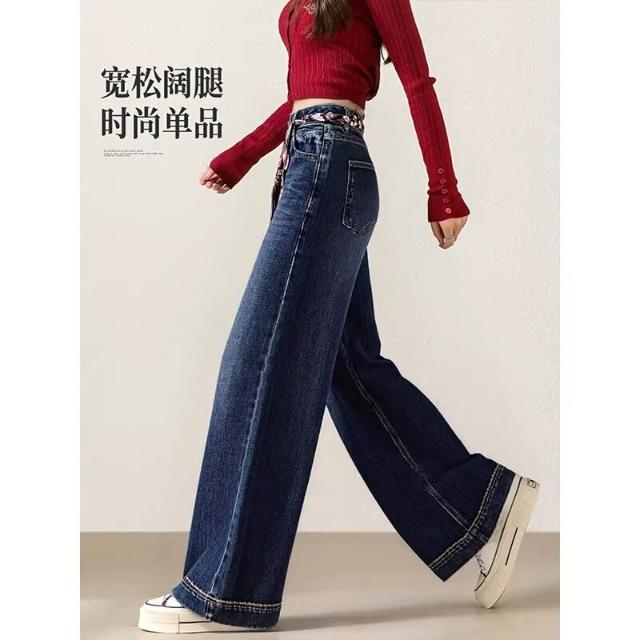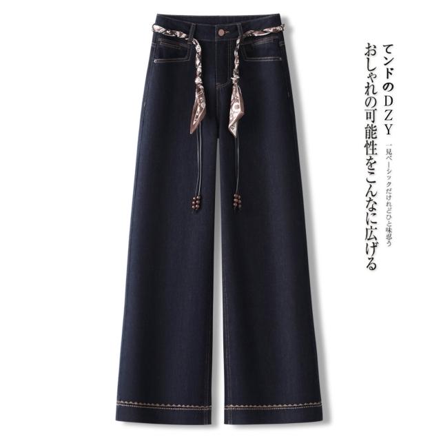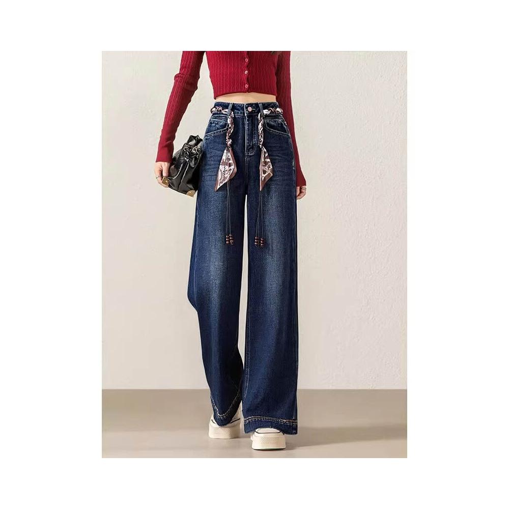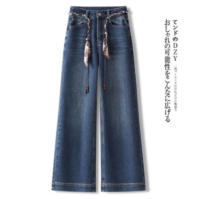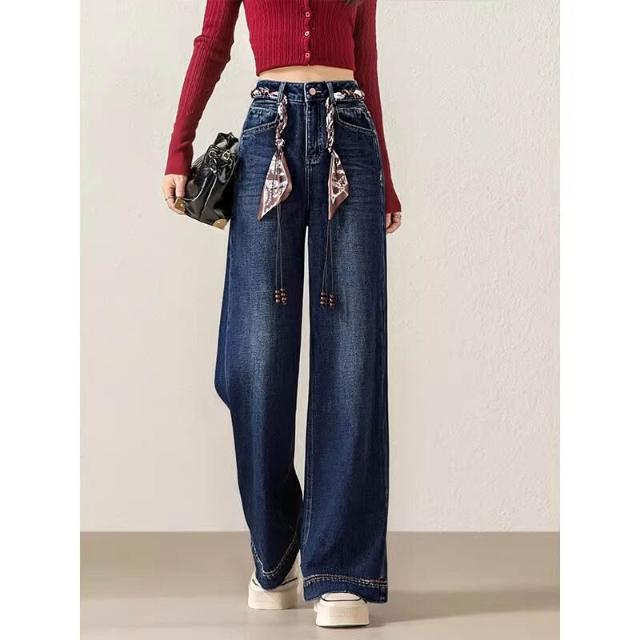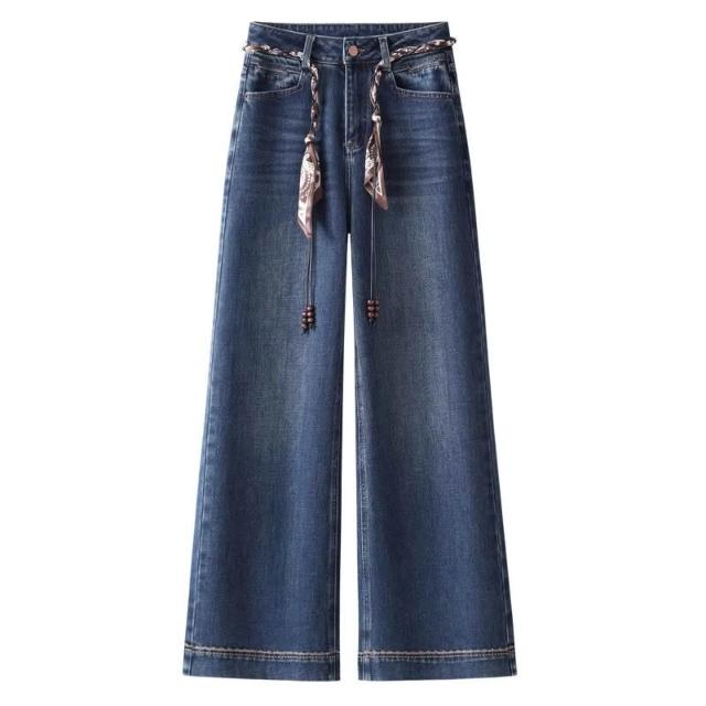 輕奢藍闊腿牛仔褲女春秋季2025新款巨好看顯瘦韓系氣質直筒褲