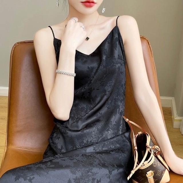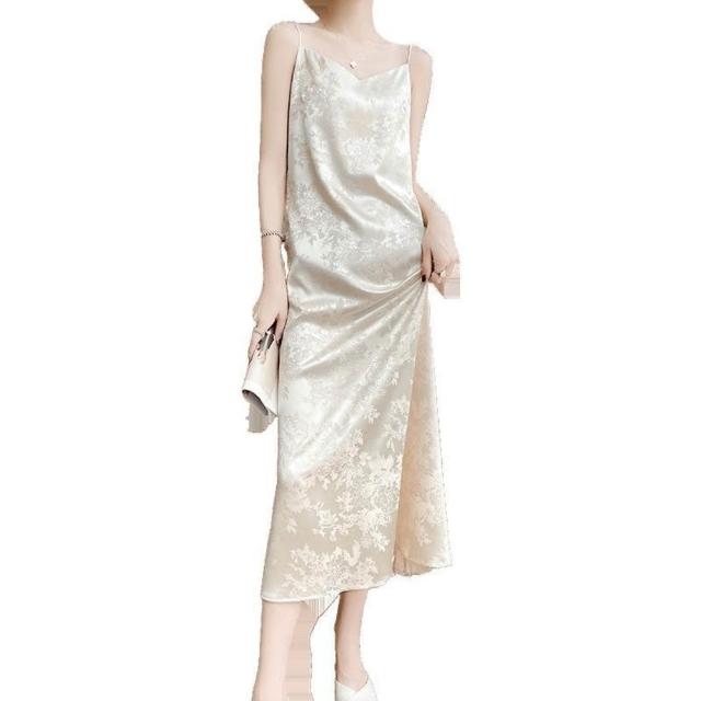 法式緞面吊帶連衣裙女夏高級感醋酸提花裙子顯瘦氣質長裙背心國風
