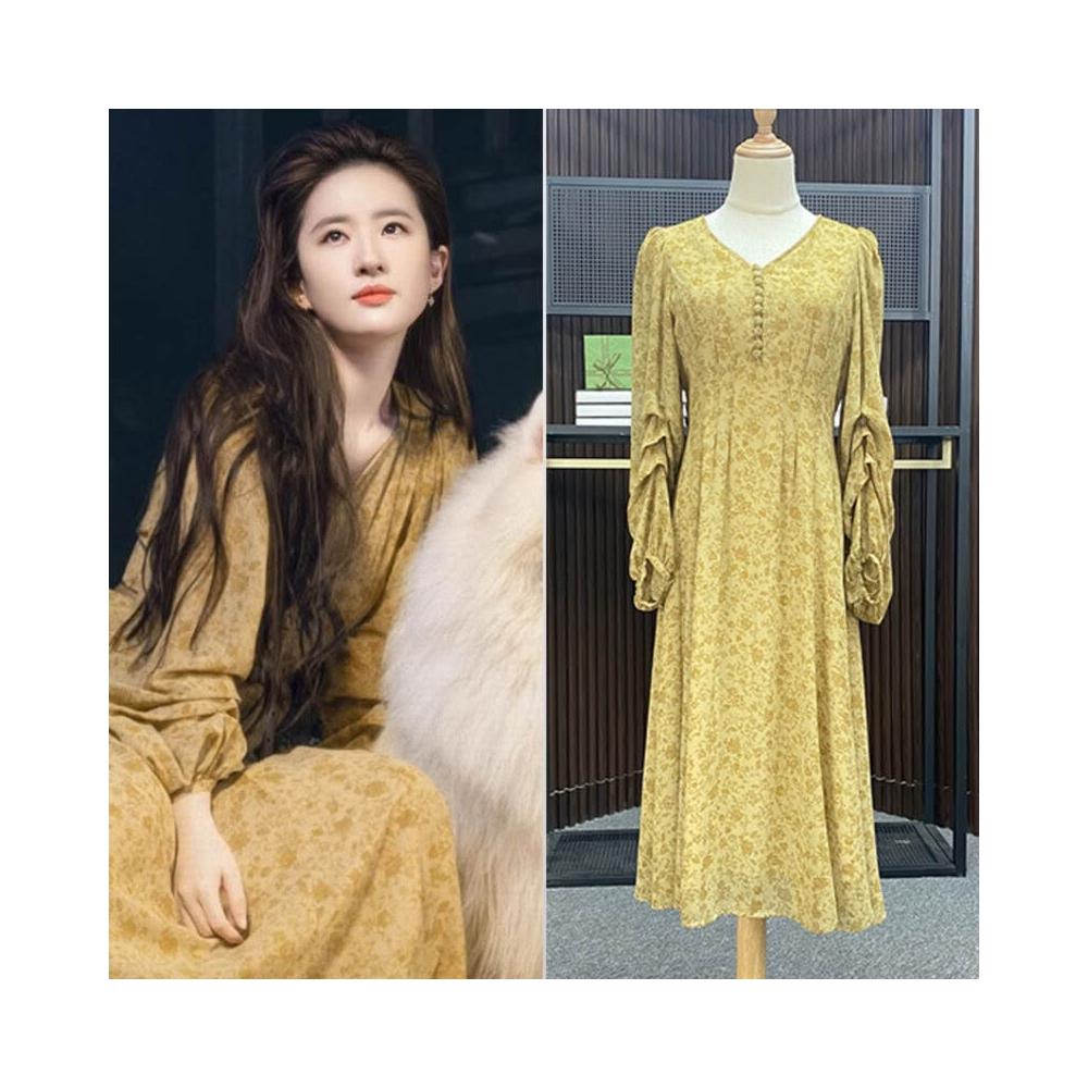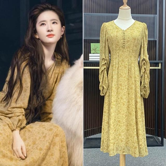 去有風的地方劉亦菲同款碎花連衣裙女夏新款印花V領裙子