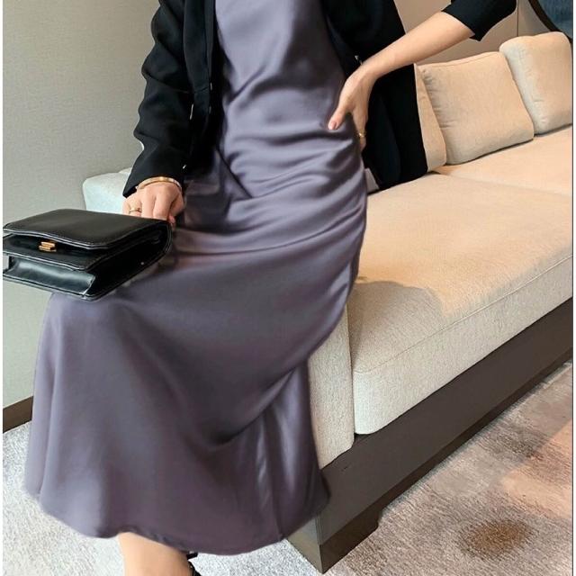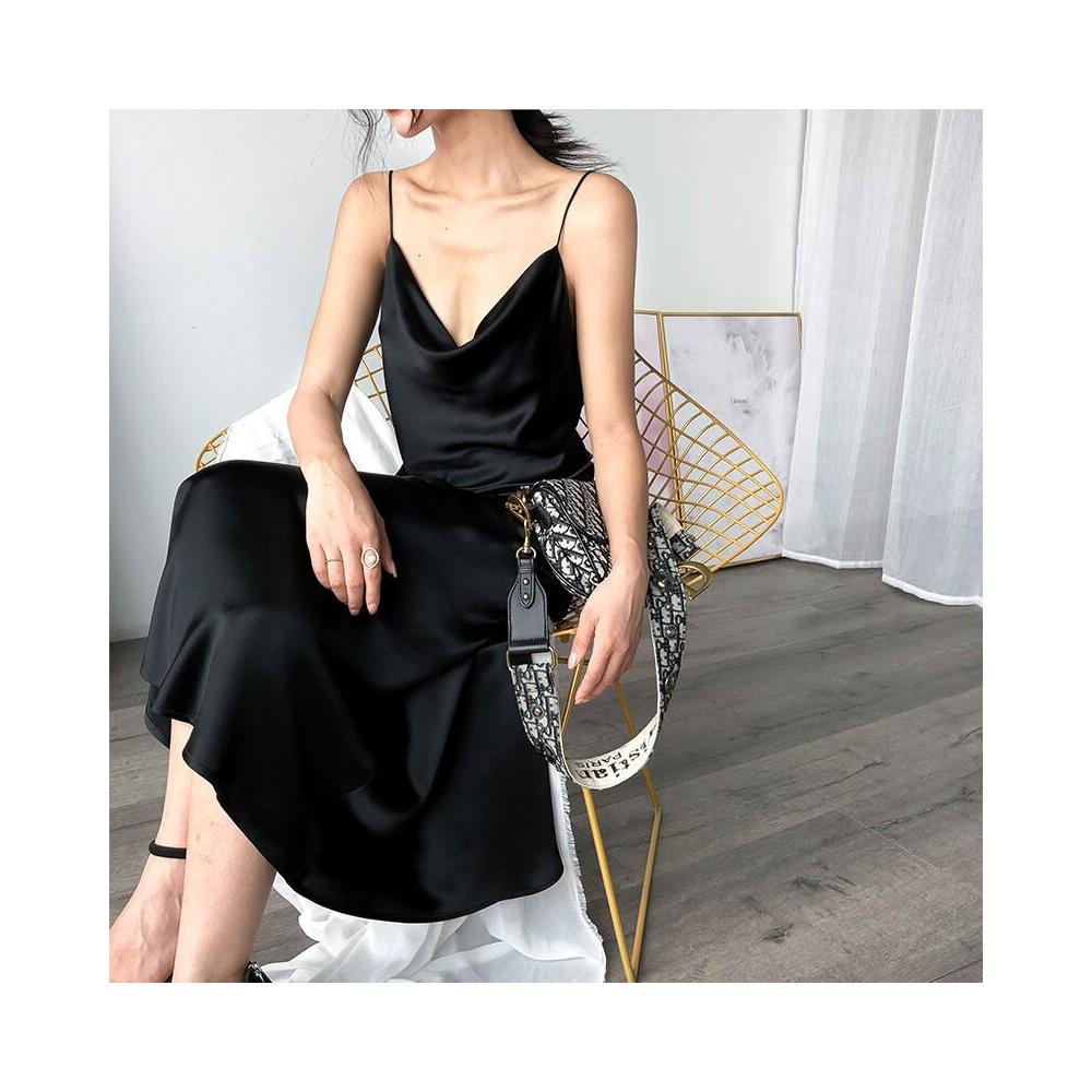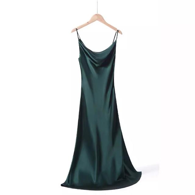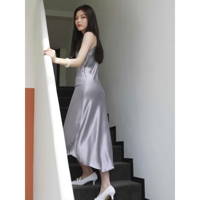 三醋酸緞面連衣裙超美多色45度斜裁蕩領酒紅色吊帶長裙