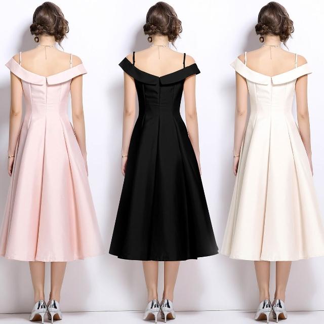 法式氣質千金白色一字肩吊帶連衣裙女高級感公主收腰長裙生日禮服