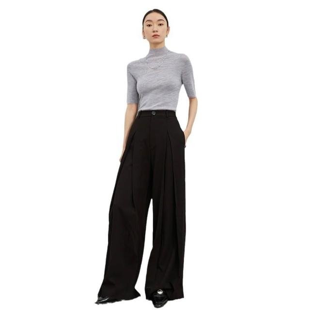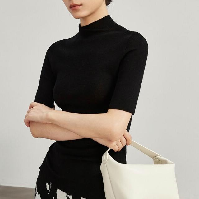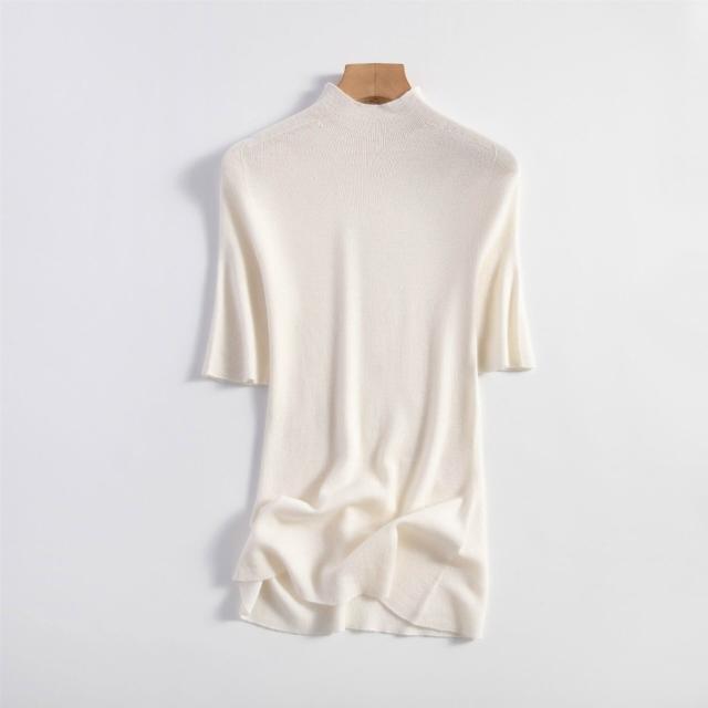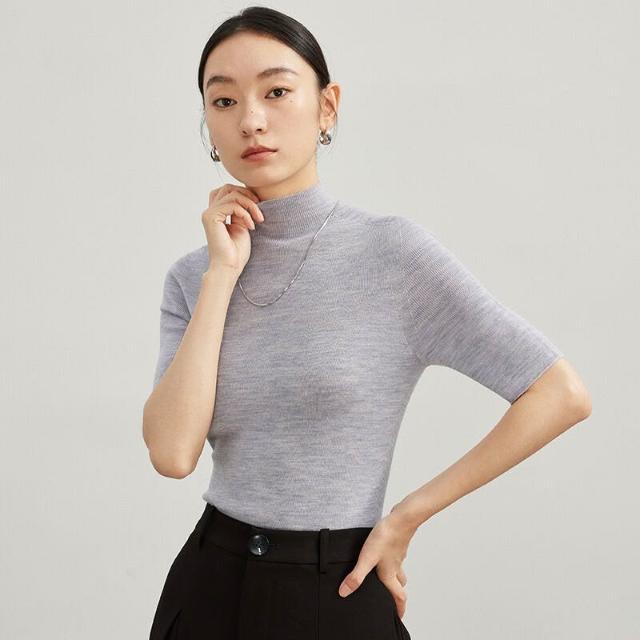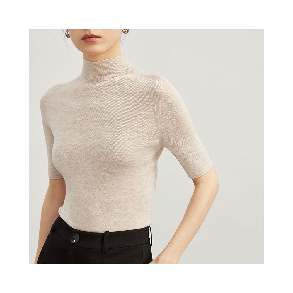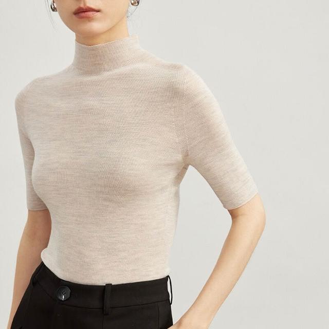 島精18針100%揚子紗半高領打底衫女裝25早秋修身短袖針織衫羊毛衫