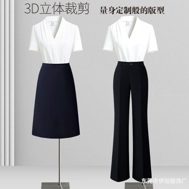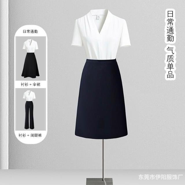 白色職業襯衫女夏短袖打底v領上衣時尚百搭職場氣質通勤面試正裝